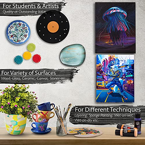 Acrylic Craft Paints For Variety of Surfaces: the acrylic paint will be perfect for your art on wood, glass, ceramics, canvas, stones and so on – don’t be afraid to experiment and have fun!