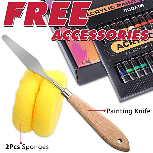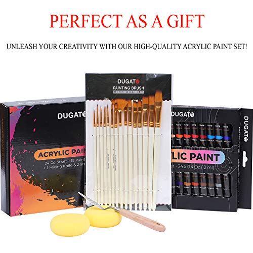 Acrylic Paint Set by DUGATO – 24 Rich Pigment Colors 15 Premium Paint Brushes 2pcs Sponges and Mixing Knife – for…