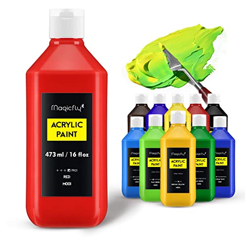 Magicfly Bulk Acrylic Paint Set, 12 Rich Colors (16 oz/473 ml) Large Acrylic Paint Bottles, Artist Quality Acrylic Paint… $66.99