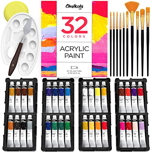 Chalkola Acrylic Paint Set for Adults, Kids & Artists – 45 Piece Acrylic Painting Supplies Kit, with 32 Acrylic Paints…