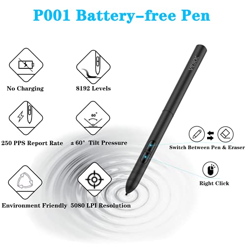 [Battery-free Pen]: The 8192 levels digital pen is accurate and responsive, provides you natural experience as writing on real paper. The 2 programmable shortcuts allow you to quickly modify your work, while avoiding getting your hands and clothes dirty, when creating. And there is no need to change dry cell neither need to charge, ideal for projects that take a long time to complete without worrying that the pen is about to run out of power. 8 replaceble nibs included.