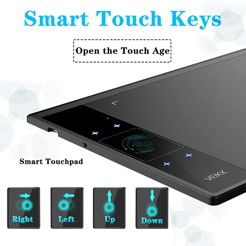 [4 Touch Keys and 1 Touch Panel]: With the unique design of full touch control, you can customise the 4 touch shortcuts according to your usual software or painting habits, or you can control the canvas and brushes via the trackpad, just as you would on your mobile phone, improve work efficiency and create your work more freely.