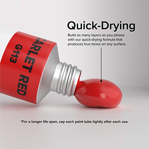 Make sure this fits by entering your model number. Artist Quality Acrylic Paint Set. Premium paints glide on smoothly, dry quickly and stay as beautiful as the day they were painted. Whether you’re new to acrylic painting or a seasoned artist, the paint kit will set fire to your imagination. Great acrylic paint for canvas painting, halloween decorations, pumpkin painting. The craft paint set is great to produce true, consistent shades on painting art, ideal for professional artists, young aspiring artists, painting lovers, students and kids. High Quality, Rich Pigments, Certified Safe & Non-Toxic: No need to worry about toxicity with our acrylic paint. The acrylic water-based non-toxic paint is Safe for all ages. The creamy consistency and high pigments offer great covering power for large areas and fine details. Blend easily and dry quickly. The fast-dry formula allows you to layer additional coats or add other elements to your work right away. Easy clean up with soap and water.