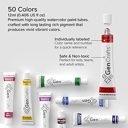 GenCrafts Gouache Paint – Set of 50 Premium Vibrant Colors – (12 ml, 0.406 oz.) – Quality Non Toxic Pigment Paints for…